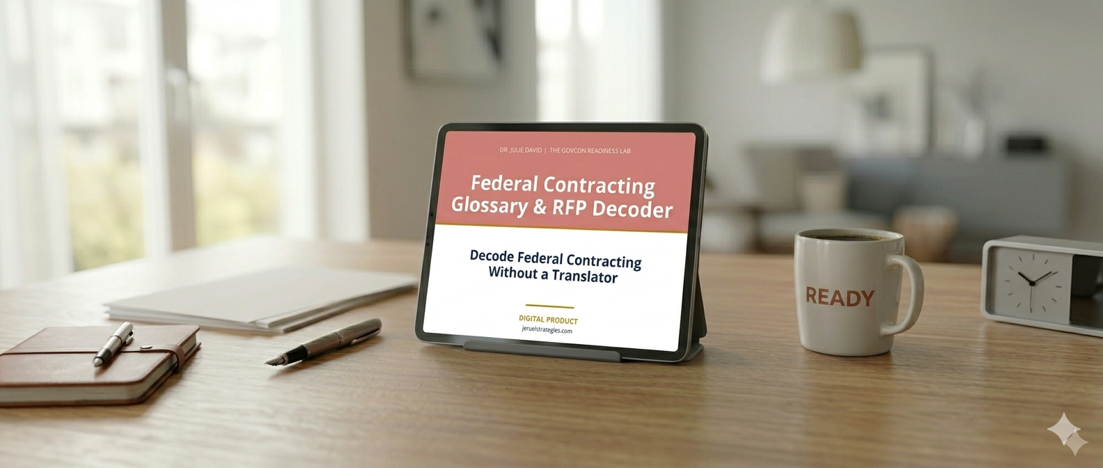 Dr. Julie David is a federal contracting strategist who believes that jargon shouldn't be a barrier to entry. After years of watching brilliant wellness providers and consultants get sidelined by "alphabet soup," she built this Decoder to level the playing field. Dr. Julie David specializes in turning dense FAR clauses into clear, actionable business strategy.
